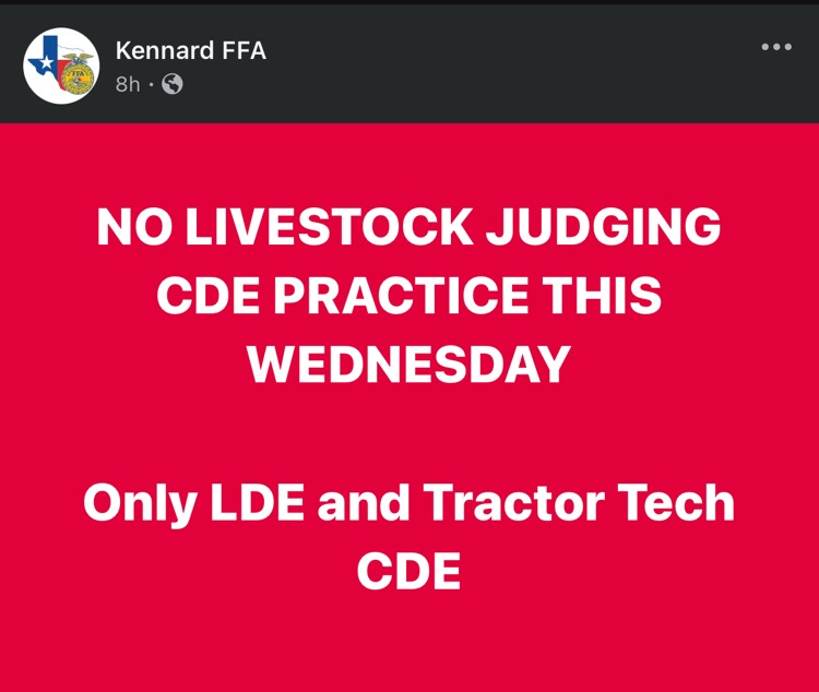 LDE Practice Today, in the Ag Building from 4:00 PM - 5:30 PM.